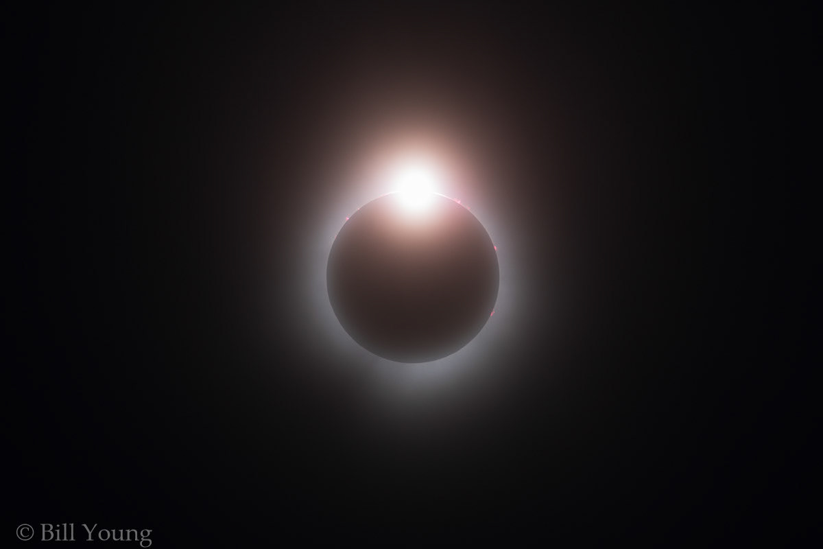 I've never had the opportunity to be within driving distance of the path of totality of a solar eclipse, so I couldn't pass this up. Friends and I drove from Ottawa to Kingston and onto the ferry to Wolfe Island. A few weeks earlier I had scouted for some good compositions that used the wind turbines as strong foreground objects in wide angle shots. Due to cloud cover none of the wide shots really turned out well enough to see the partial sun, too much scatter. As totality approached the cloud cover was getting heavier so we quickly put the gear in the car and the car in gear and headed down the road to pick a different location with no time to scout alternatives. At least the cloud was a bit thinner where we stopped. The images here are a mix of the two locations, but with totality at the second stop, and all but one with the 400mm lens and cropped in Lightroom. Again, due to the high cloud it isn't possible to bring out any detail in the corona, the diamond ring, and Bailey's Beads; we are likely looking primarily at scatter in these photos. I was pleasantly surprised that the prominences are quite apparent. The light on the land at totality is quite amazing, but I didn't really capture it properly. Next time...