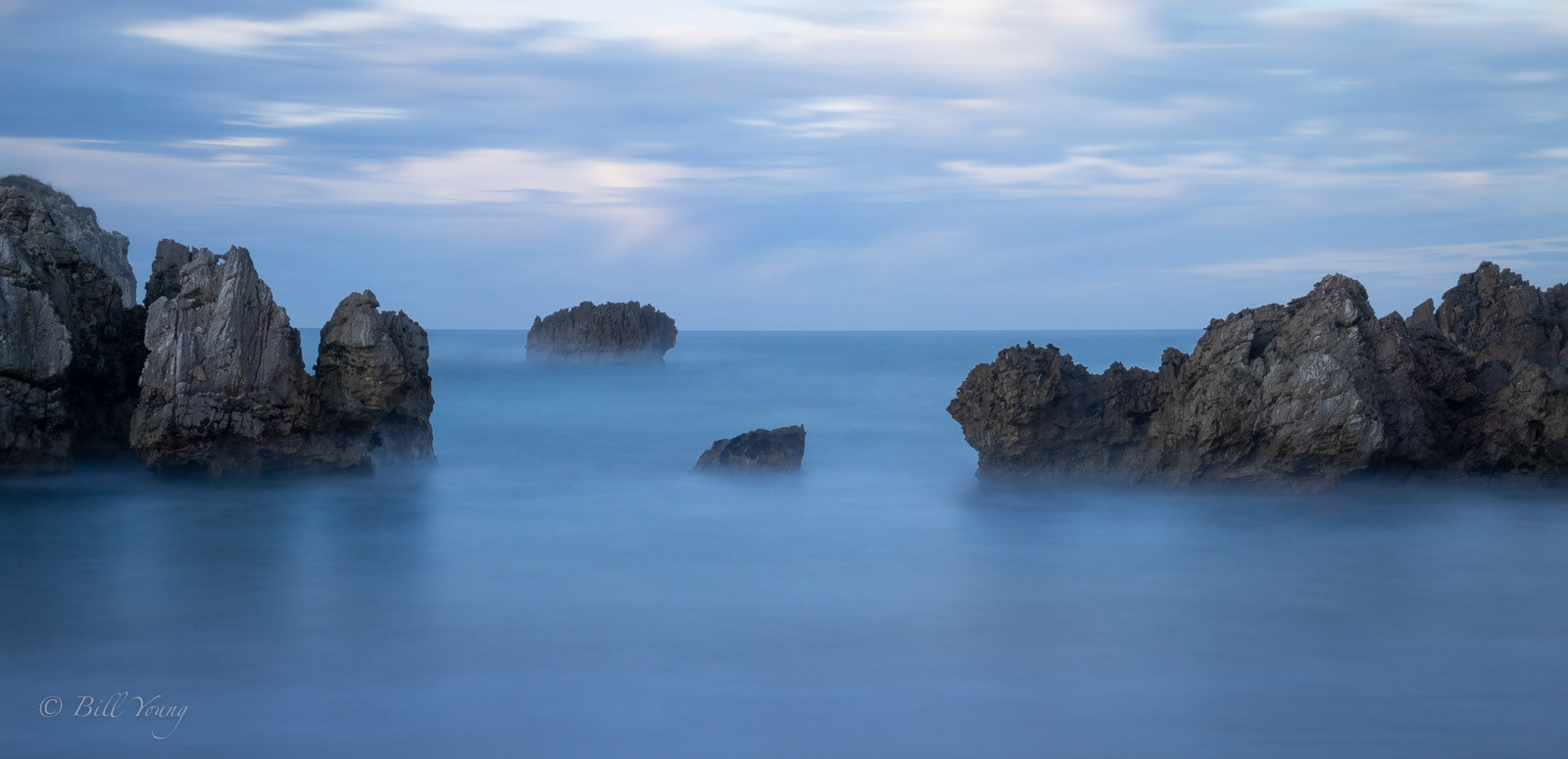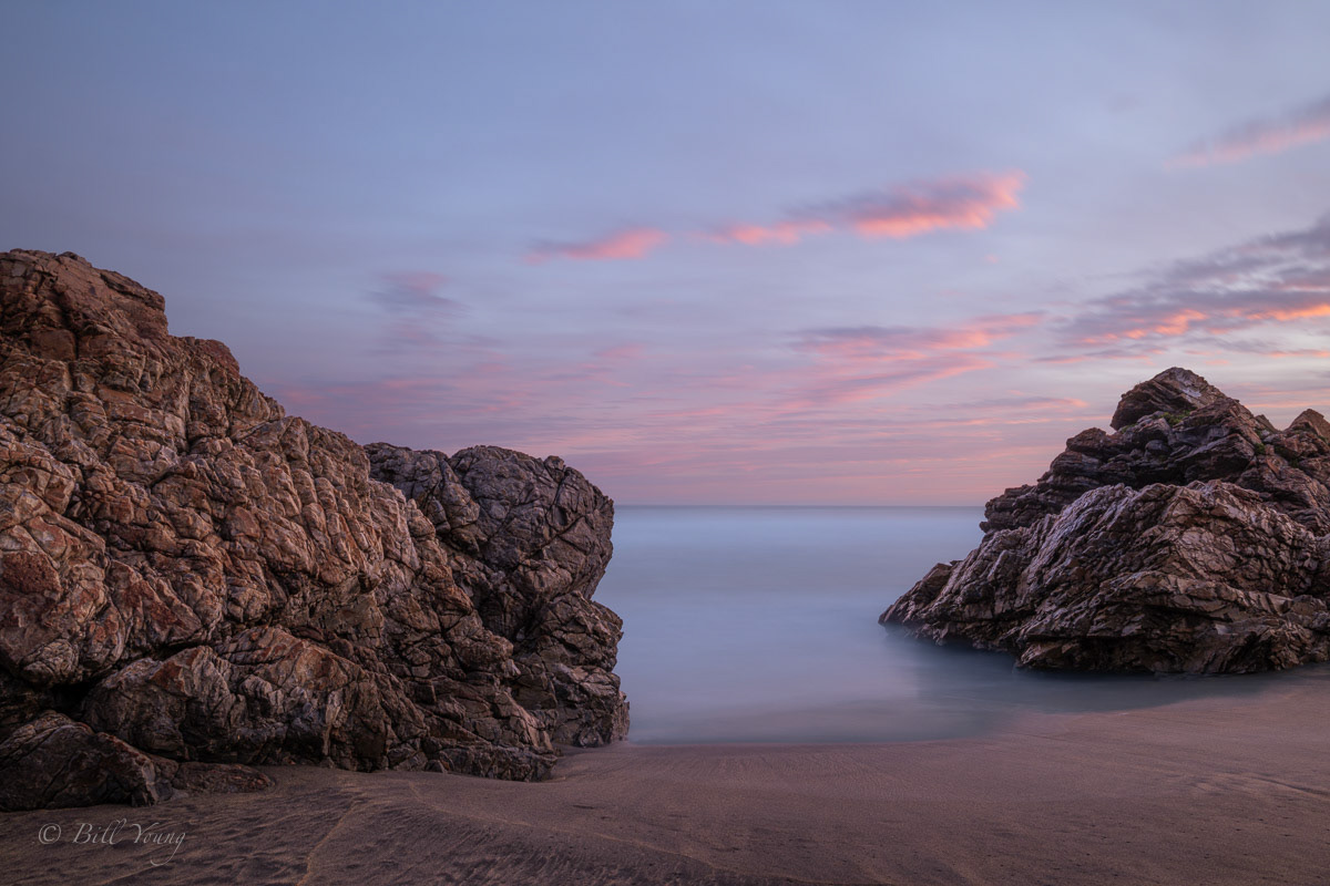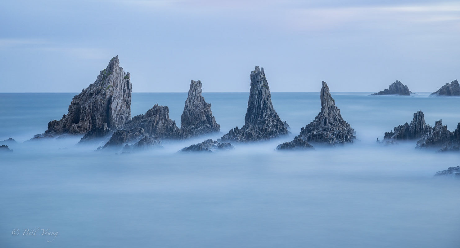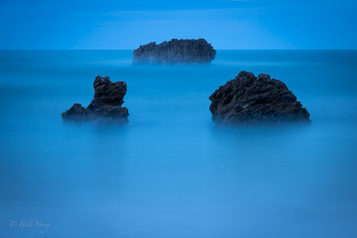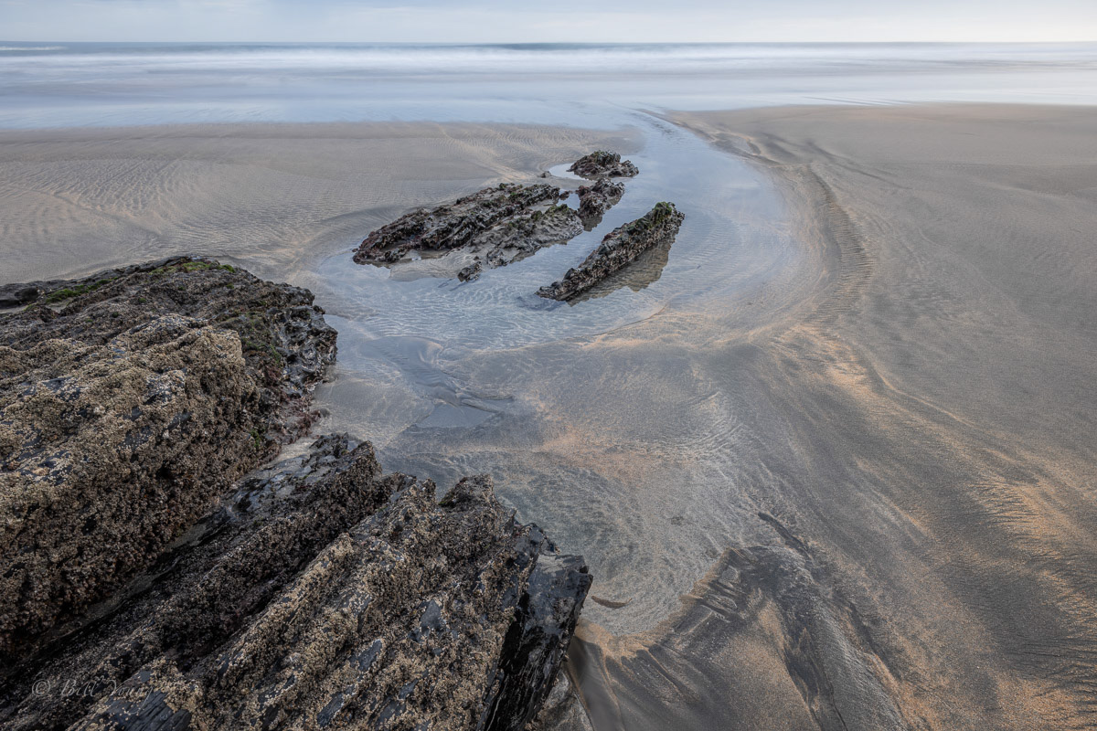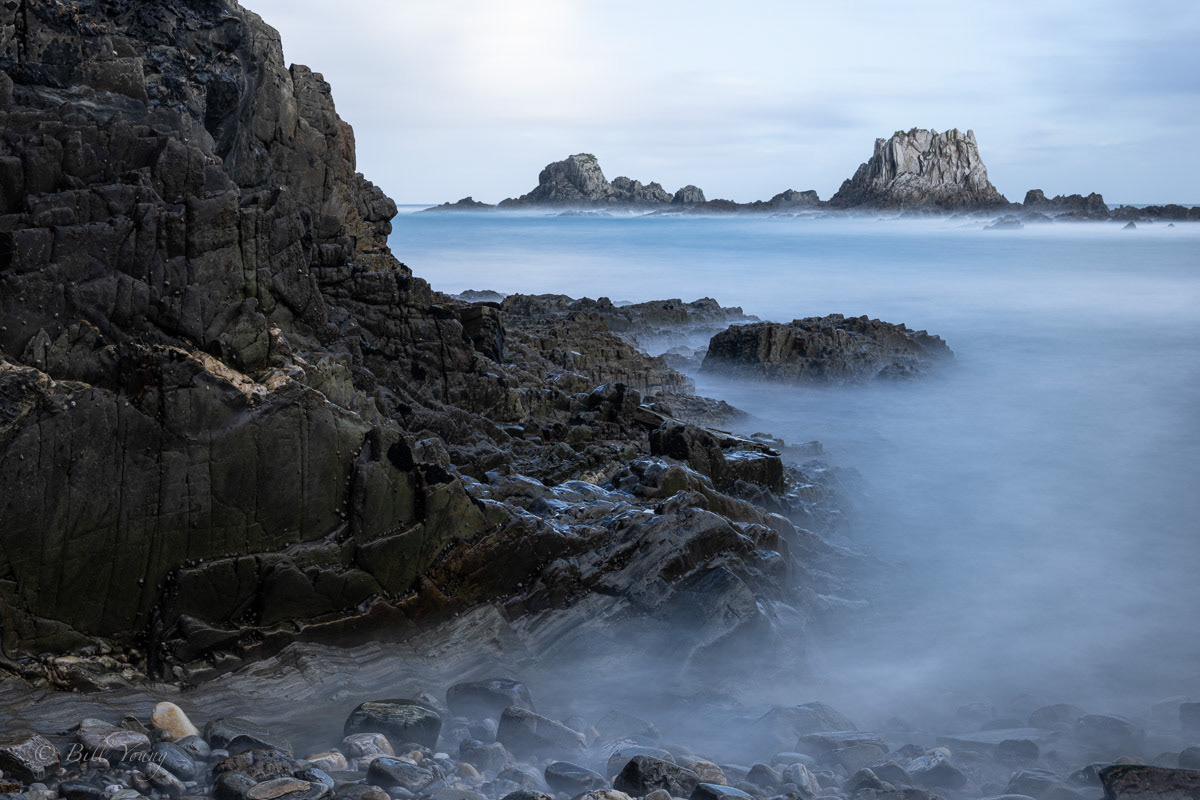 There are a few places where I have put in similar images, not having decided yet which one I like best. But this also shows that a good location can be bountiful if you keep shooting, it's rarely 'one and done'. In most seascapes the water is intentionally smoothed by a long exposure time as I wanted to complement the lighting that was suggestive of serenity.